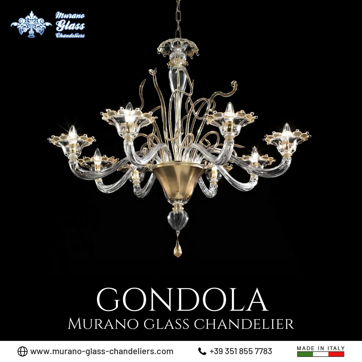 “Gondola” #Murano glass #chandelier, 8 lights transparent and gold color contemporary chandelier made in Italy by hand.