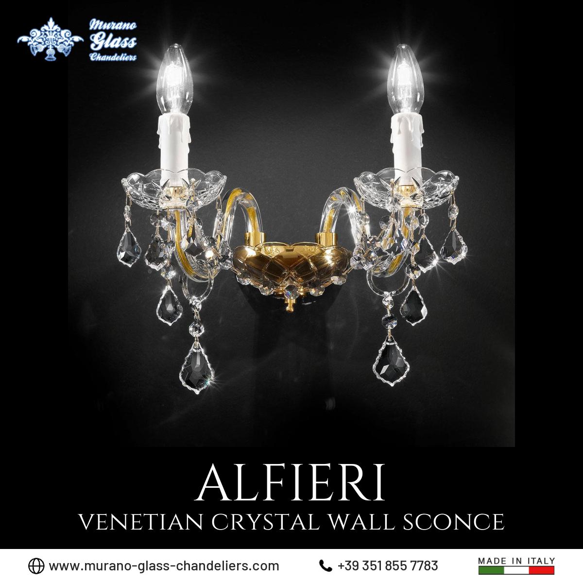 “Alfieri” venetian crystal wall #sconce, 2 lights transparent color wall sconce entirely handmade in Italy.