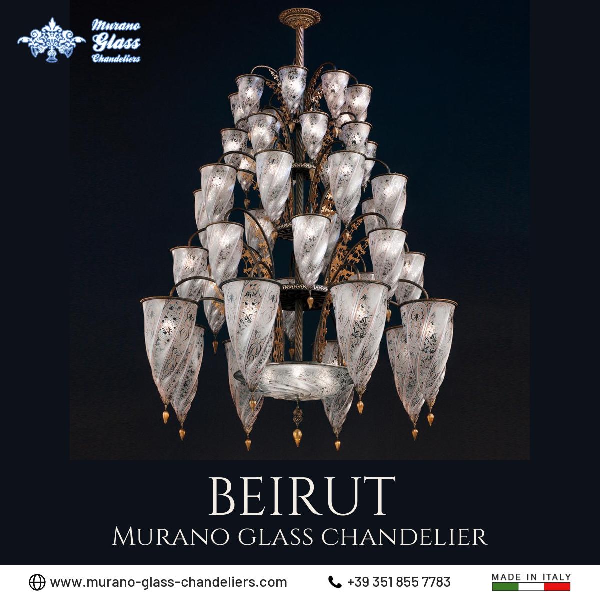 “Beirut” #Murano glass #chandelier, 41 lights neutral color fortuny made in Italy by hand.