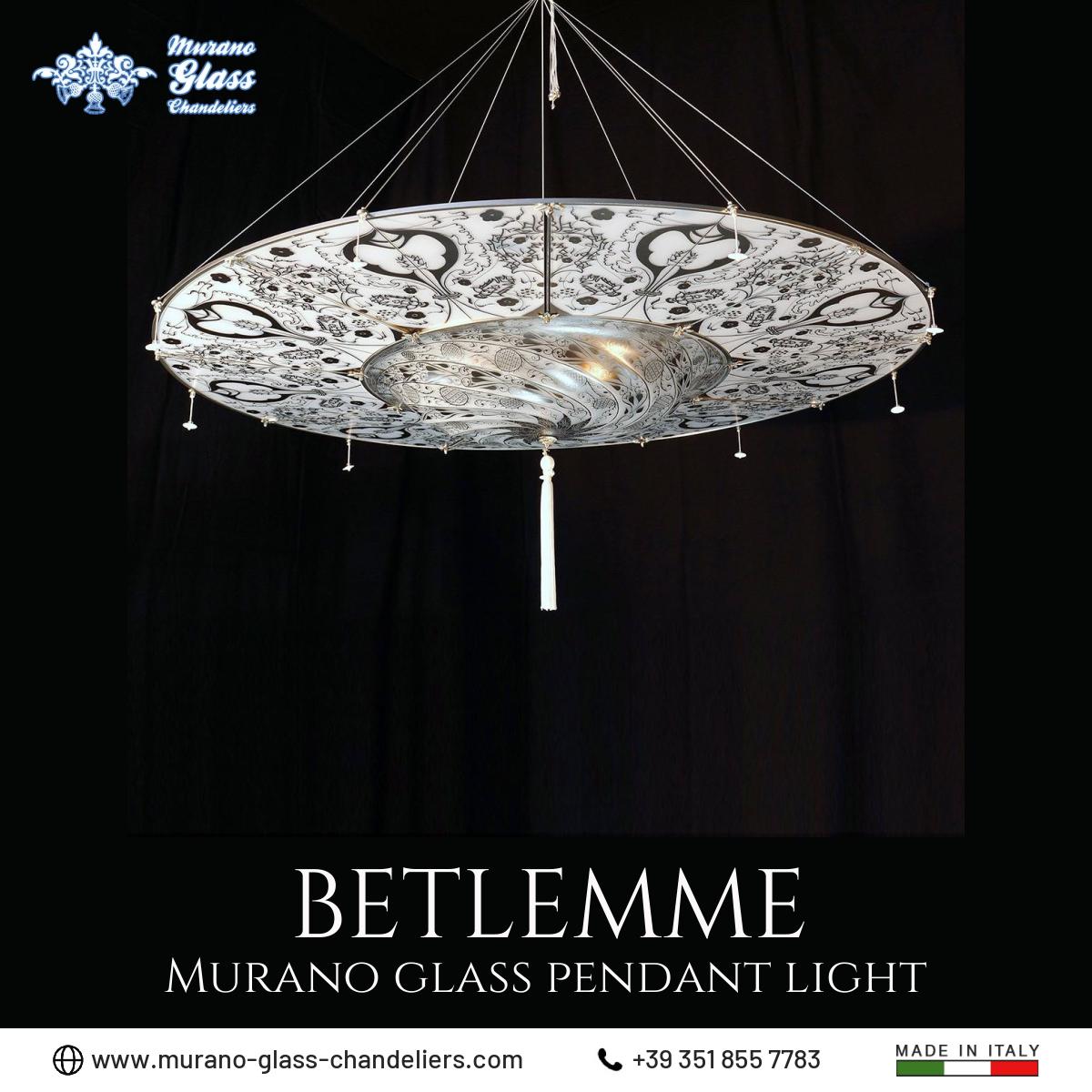 “Betlemme” #Murano glass pendant #light, 3 lights white color fortuny entirely handmade in Italy.