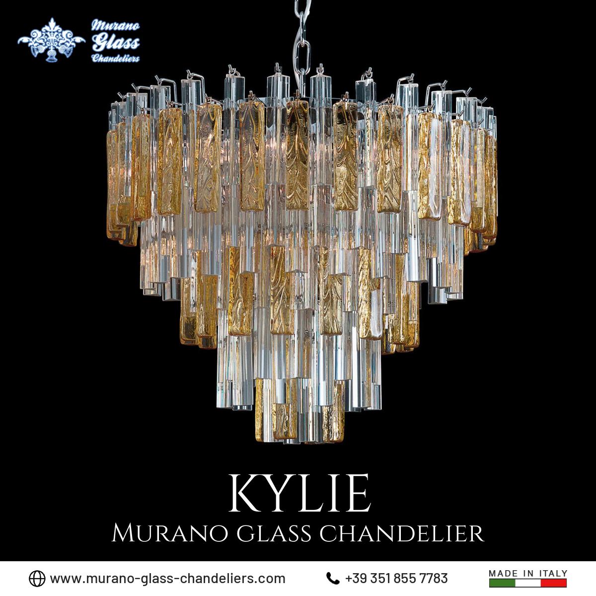 “Kylie” #Murano glass #chandelier, 9 lights transparent and amber color art deco lighting fixture made in Italy by hand.