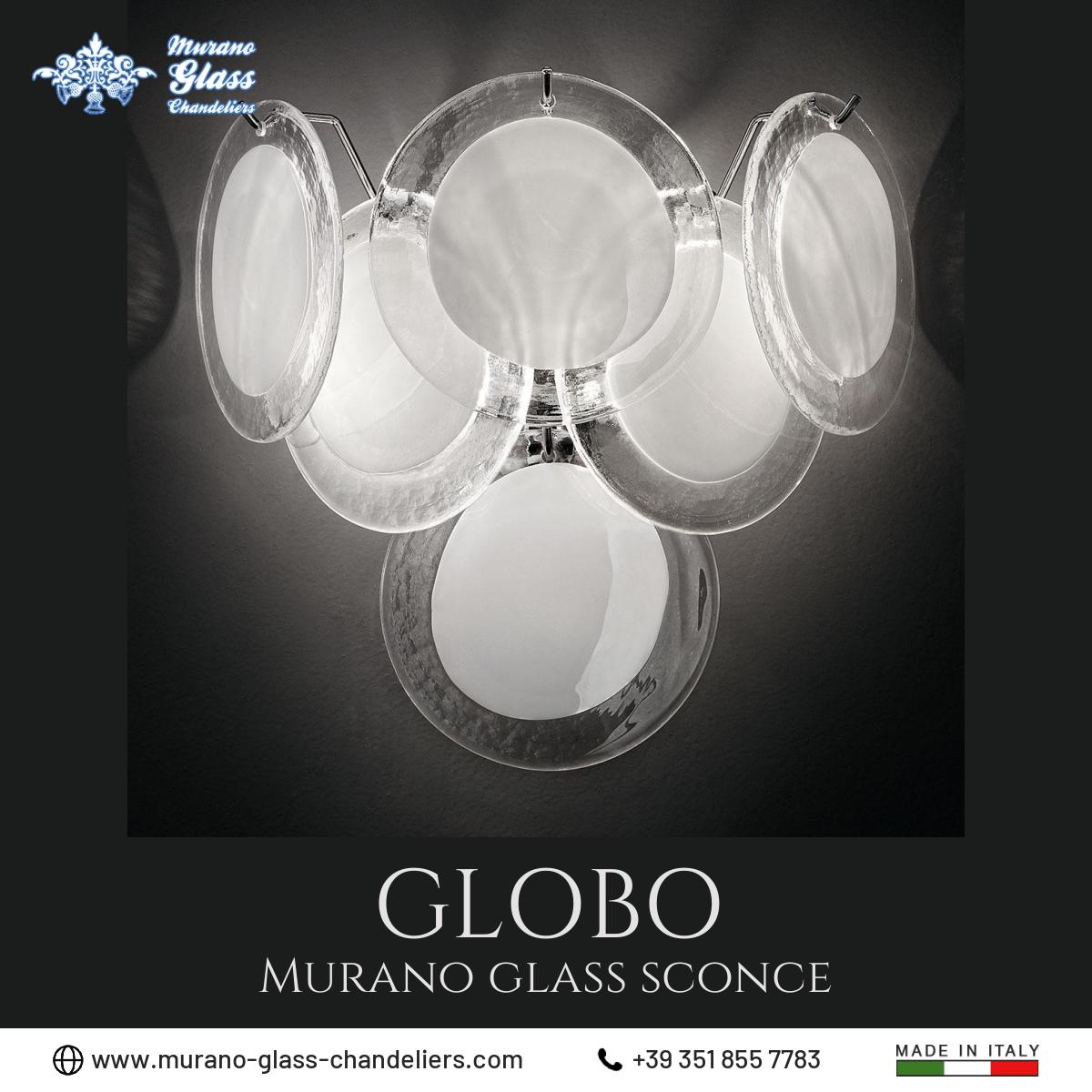 “Globo” #Murano glass #sconce, 2 lights white color wall sconce made in Italy by hand.