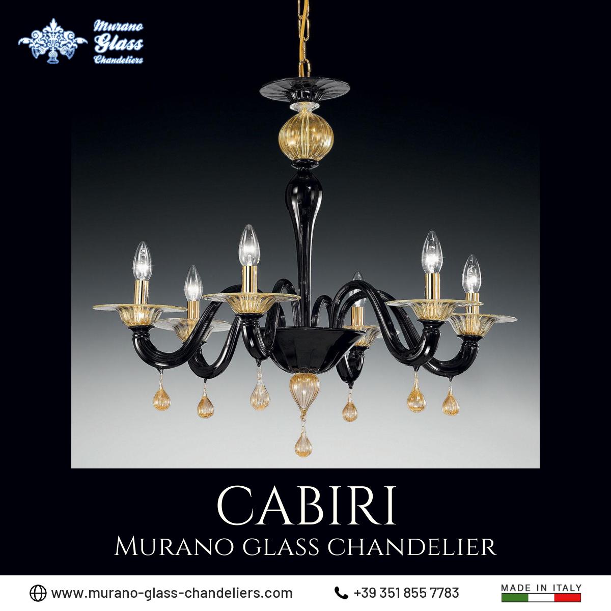 “Cabiri” #Murano glass #chandelier, 6 lights black and gold color classic chandelier entirely handmade in Italy.