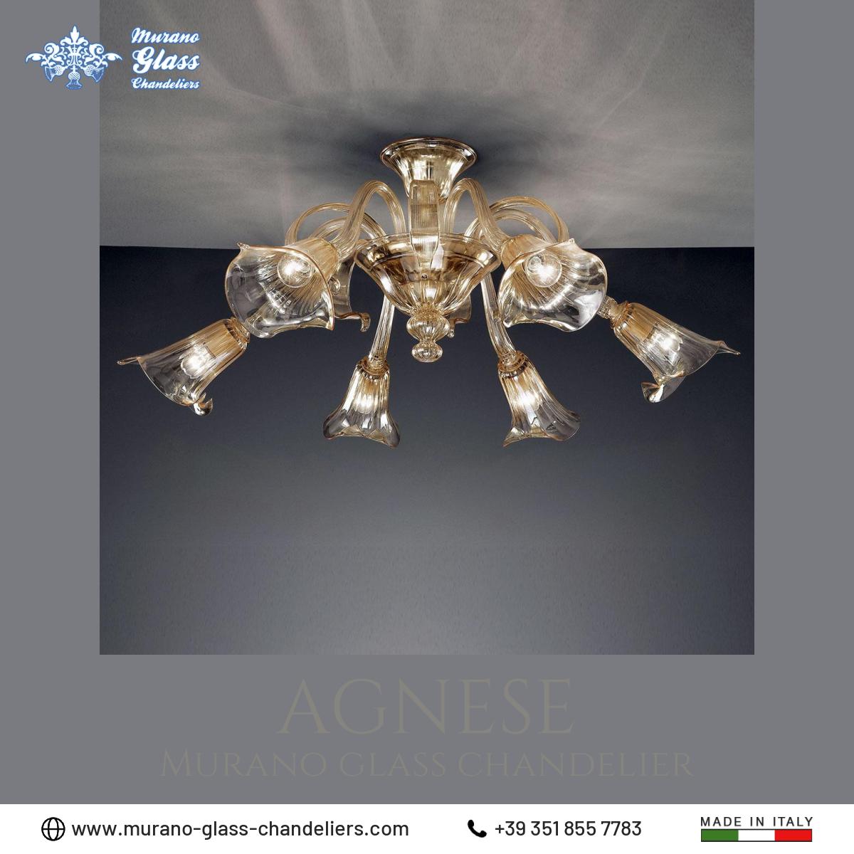 “Agnese” #Murano glass #chandelier, 6 lights amber color classic chandelier made in Italy by hand.