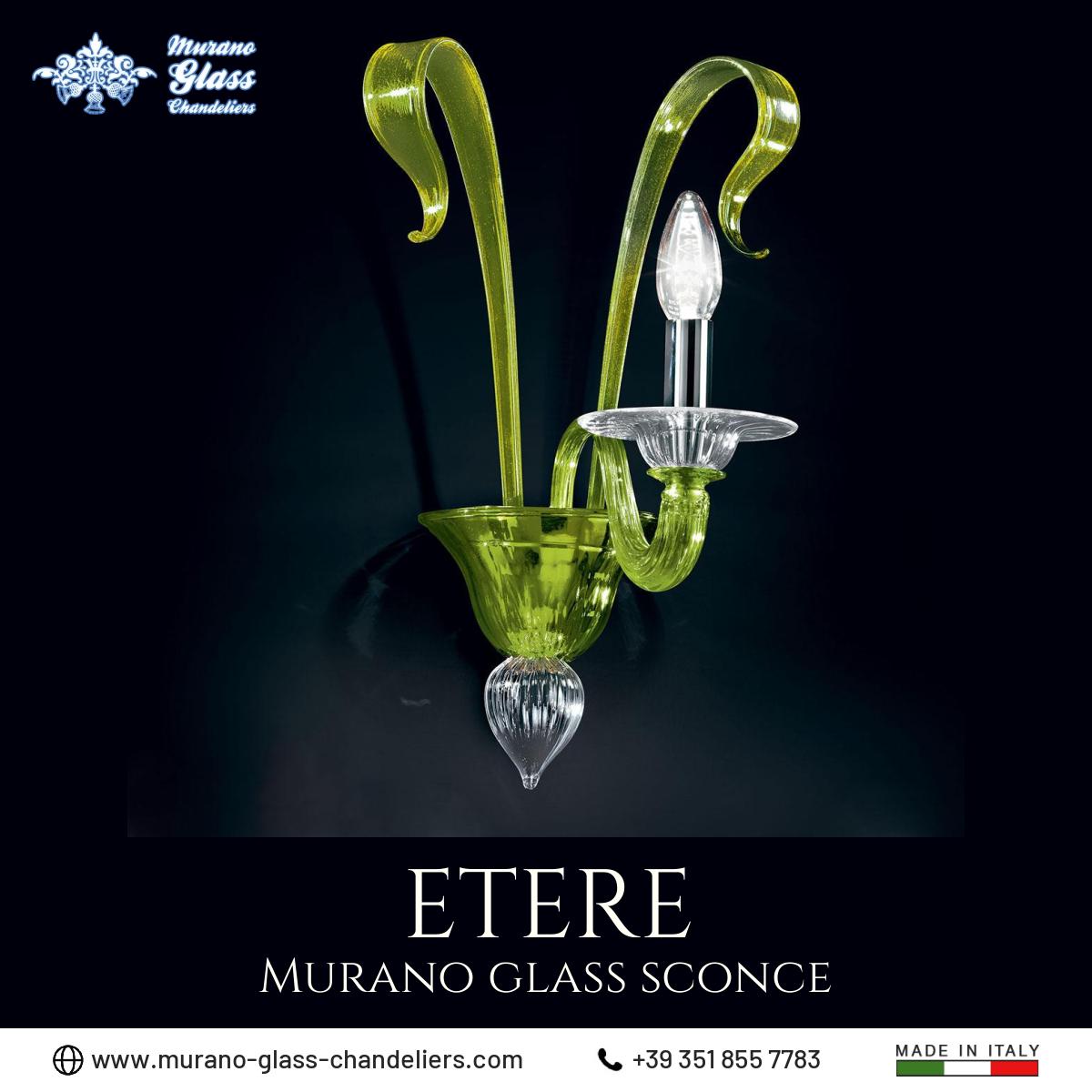 “Etere” #Murano glass #sconce, 1 light green and transparent color wall sconce entirely handmade in Italy.