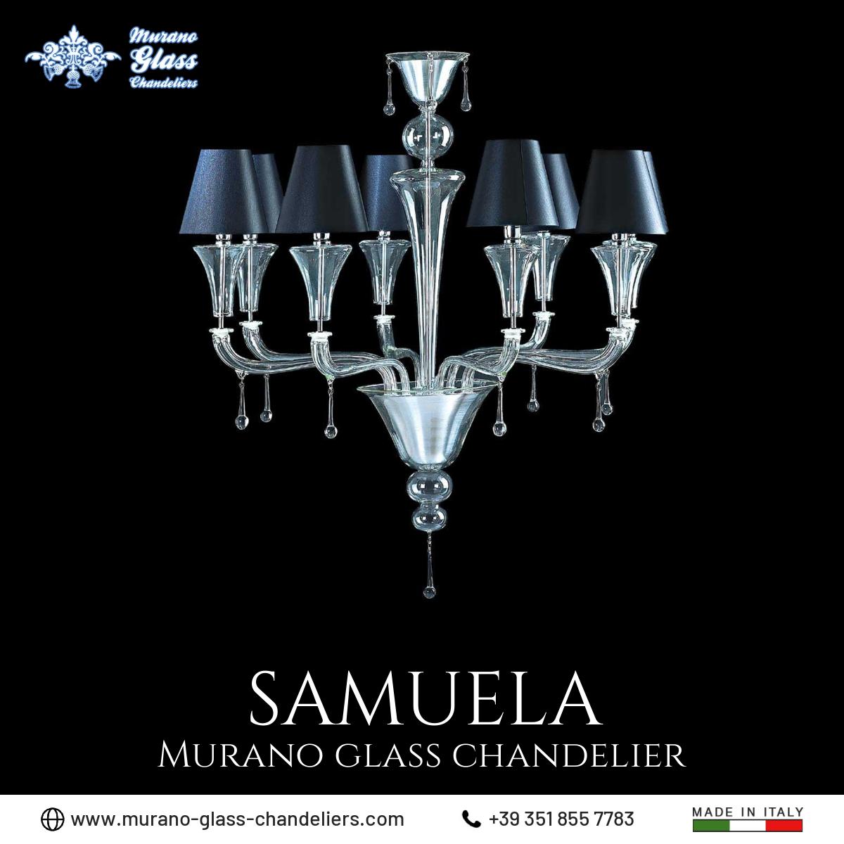 “Samuela” #Murano glass #chandelier, 8 lights transparent color lampshade chandelier entirely handmade in Italy.