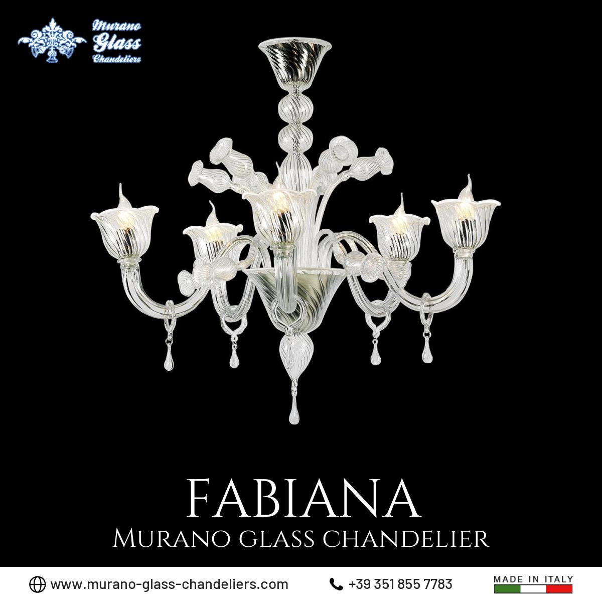 “Fabiana” #Murano glass #chandelier, 5 lights transparent and white color classic chandelier made in Italy by hand.
