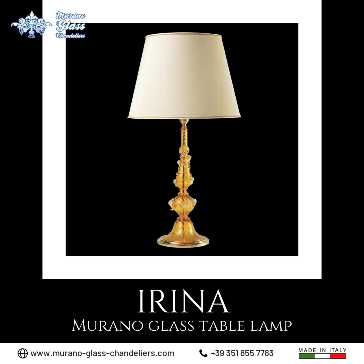 “Irina” #Murano glass table #lamp, 1 light amber color table lamp 100% made in Italy.