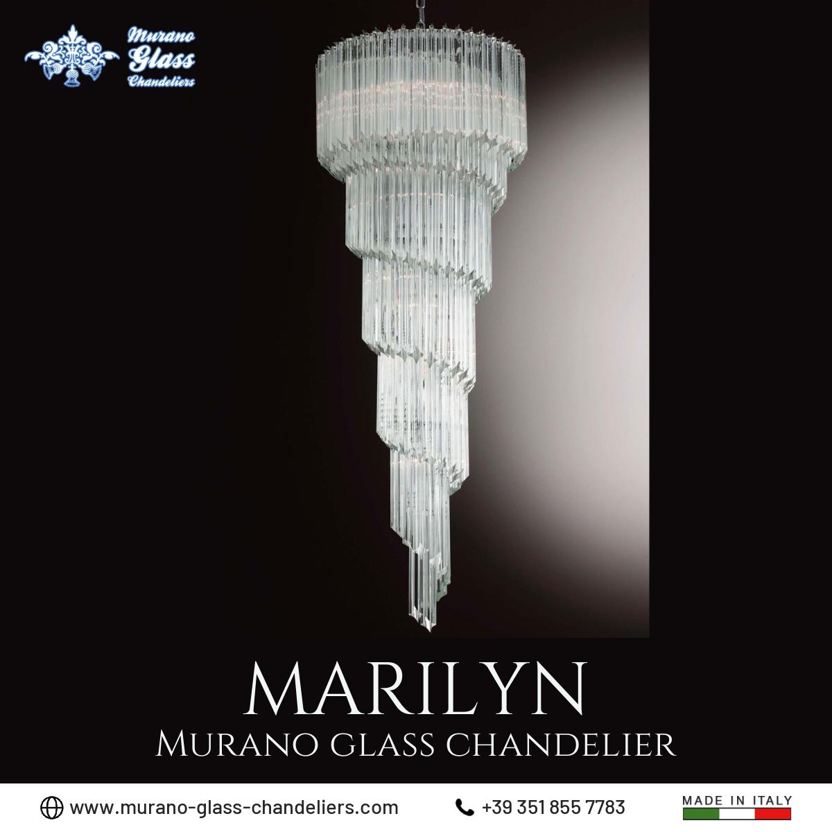 “Marilyn” #Murano glass #chandelier, 12 lights transparent color art deco lighting fixture made in Italy by hand.