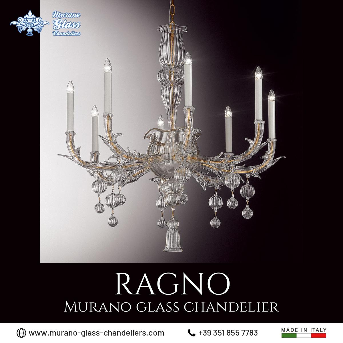 “Ragno” #Murano glass #chandelier, 8 lights transparent color classic chandelier 100% made in Italy.